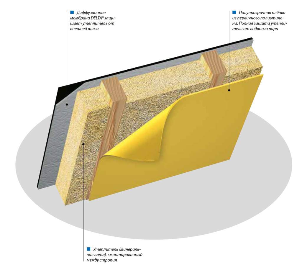 - Абсолютная защита от проникновения пара благодаря высокому сопротивлению диффузии пара (Sd = 100м);